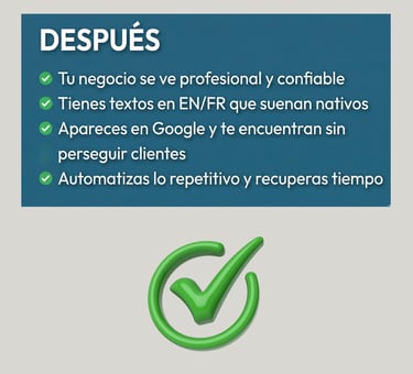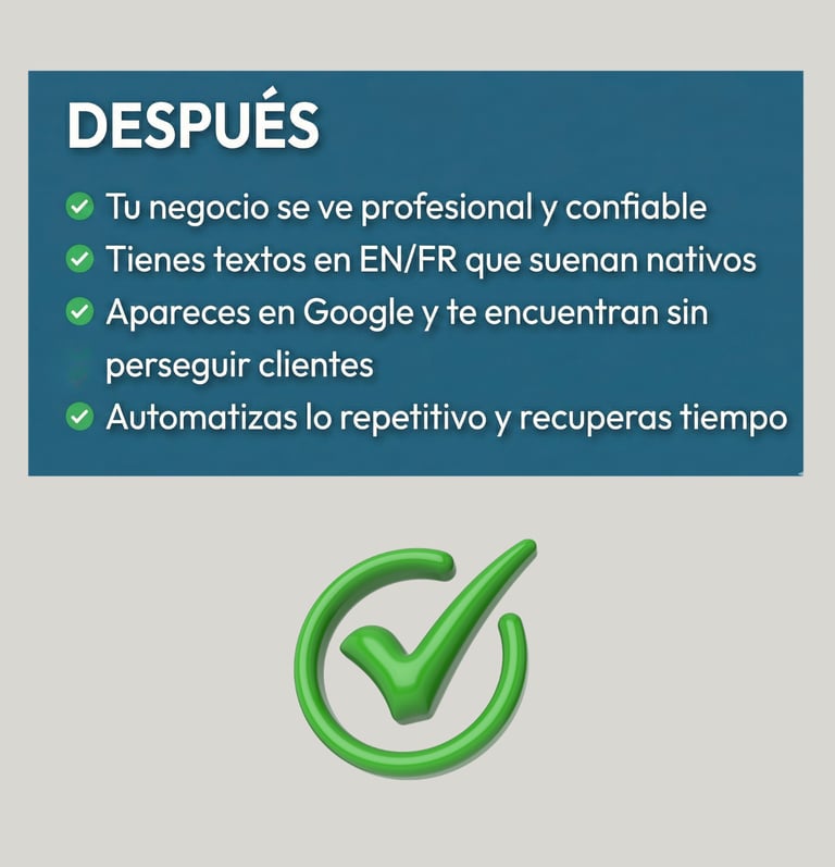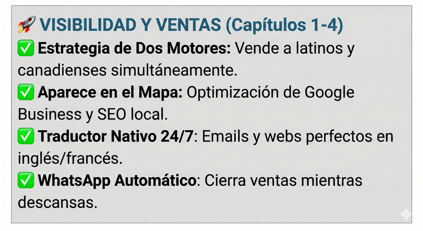 Descubre la ruta exacta para romper la barrera del idioma, automatizar tus ventas y conquistar al cliente canadiense usando Inteligencia Artificial. Sin ser experto en tecnología.