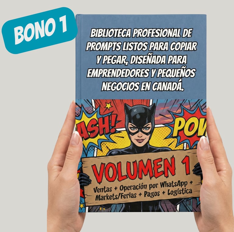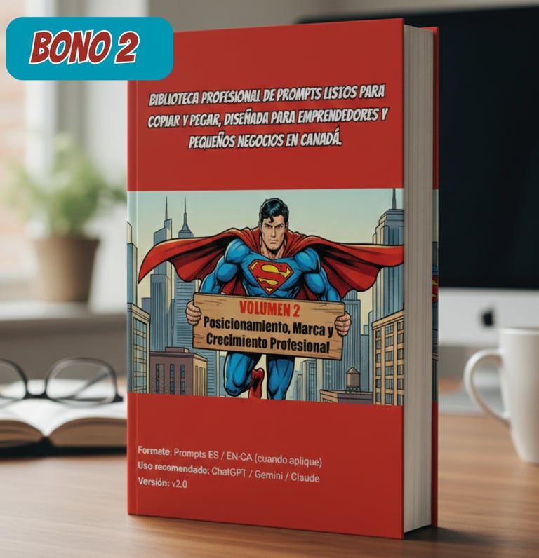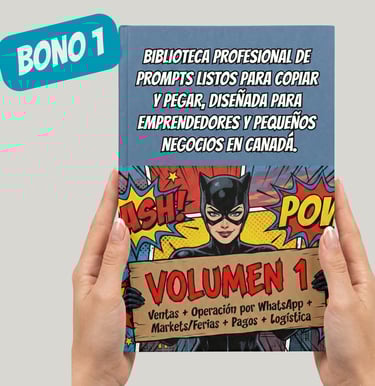 Un Pack Profesional de 2 Volúmenes con 91 prompts estratégicos, diseñados para ayudarte a pensar mejor, decidir mejor y ejecutar sin improvisar tu digitalización en Canadá.